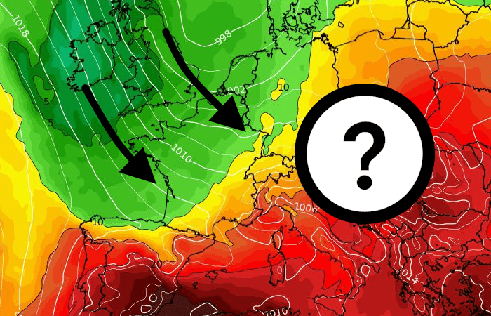 Il faudra attendre la journée du dimanche 6 juillet 2025 pour assister à un véritable changement de masse d'air. En effet, une vaste zone de basses pressions présentes sur la Scandinavie va s'étendre aux Îles Britanniques et à la mer du Nord, entraînant la bascule du flux au secteur nord-ouest et faisant passer un front sur la France. Ce dernier chassera de manière enfin efficace la chaleur en amenant un air frais en provenance de mer de Norvège, en plus de passages pluvieux (précédés d'orages des Pyrénées aux Alpes).