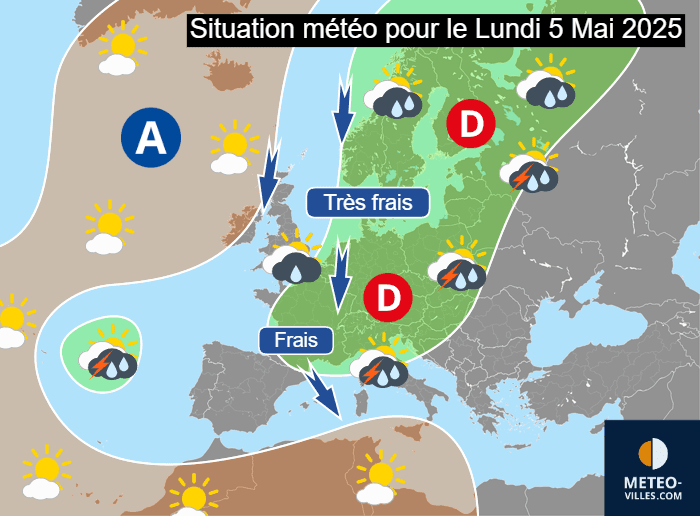 Situation météo en Europe pour le lundi 5 mai 2025 - Météo Villes