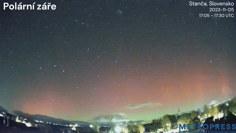Superbes aurores boréales à Stanča en Slovaquie en soirée du dimanche 5 novembre 2023 – via MeteoPress