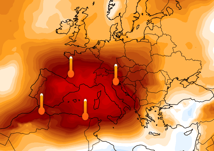 En cet été 2022, la France a presque constamment baigné dans les masses d'air très chaud. Pour simplifier, si la masse d'air atteint 15°C à 850 hPa (vers 1500m d'altitude), une vague de chaleur peut s'observer au sol avec des températures susceptibles d'atteindre les 35°C. Lorsque les 20°C sont atteints à 850 hPa, ce sont généralement des températures caniculaires que l'on retrouve nuit & jour. Sur l'ensemble des mois de juin et juillet 2022, on constate que la température moyenne à 850 hPa a dépassé les 15°C sur le tiers sud de la France, alors que ce seuil est normalement réservé à la partie sud de l'Espagne ! De même, l'isotherme des 20°C à 850 hPa s'est positionné sur le centre de l'Espagne au lieu du nord du Maghreb !