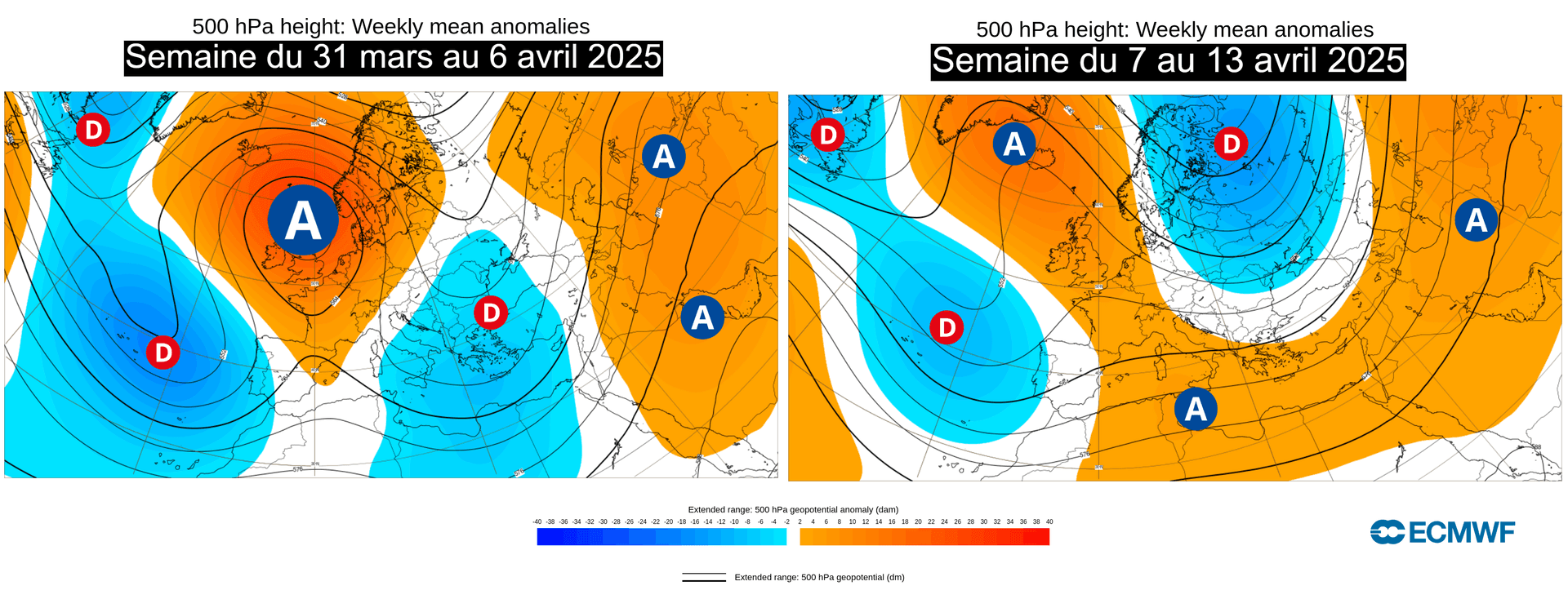 Anomalies de géopotentiels sur l'Europe du 31 mars au 13 avril 2025 – ECMWF