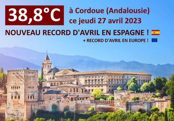 Avec 38,8°C ce jeudi 27 avril 2023, Cordoue détient désormais le record d'Europe en avril !