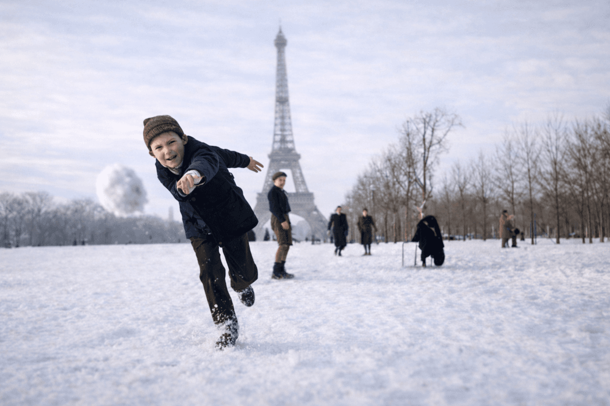 Janvier 1945 : voici 5 ans que la guerre fait rage en Europe et pourtant, la neige qui recouvre le Champs de Mars (devant la Tour Eiffel) durant presque un mois reste un terrain de jeu idéal pour ces petits parisiens. source meteo-paris.com