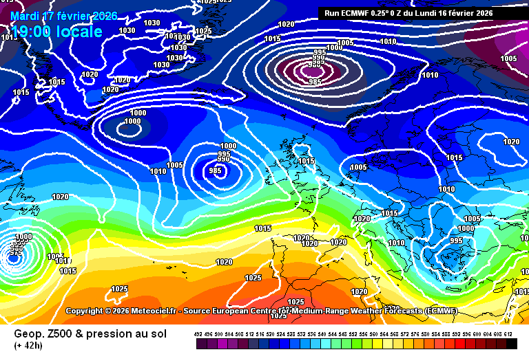 Animation des géopotentiels sur l'Europe du 17 au 20 février 2026 – Modèle ECMWF via meteociel