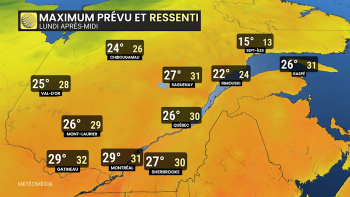 Températures maximales prévues au Québec ce lundi 6 octobre 2025 - MétéoMédia