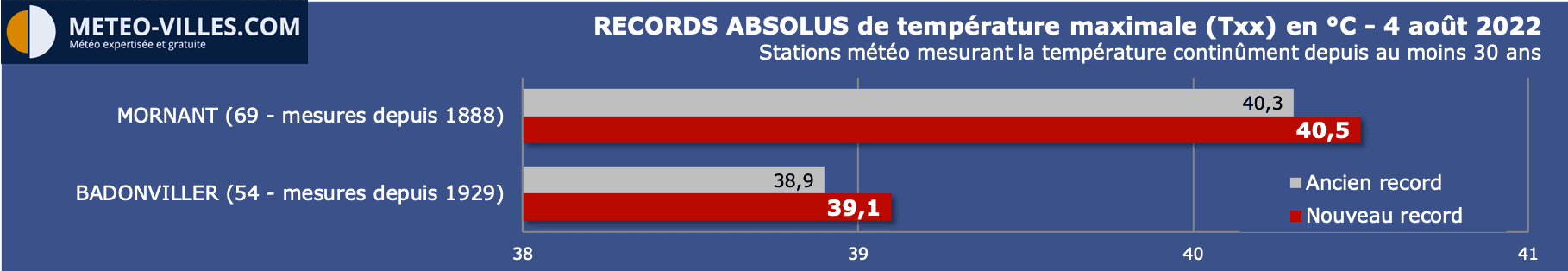 Records absolus de température maximale battus le 4 août 2022 - stations mesurant depuis au moins 30 ans - Météo-Villes