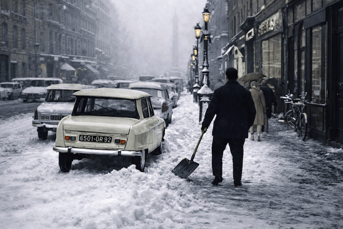 Le 11 janvier 1966, Paris se réveille sous une épaisse couche de neige, rendant le déblaiement des rues extrêmement difficile.  Cette chute de neige est l’une des plus importantes jamais enregistrées dans la capitale. (Archives meteo-paris.com)