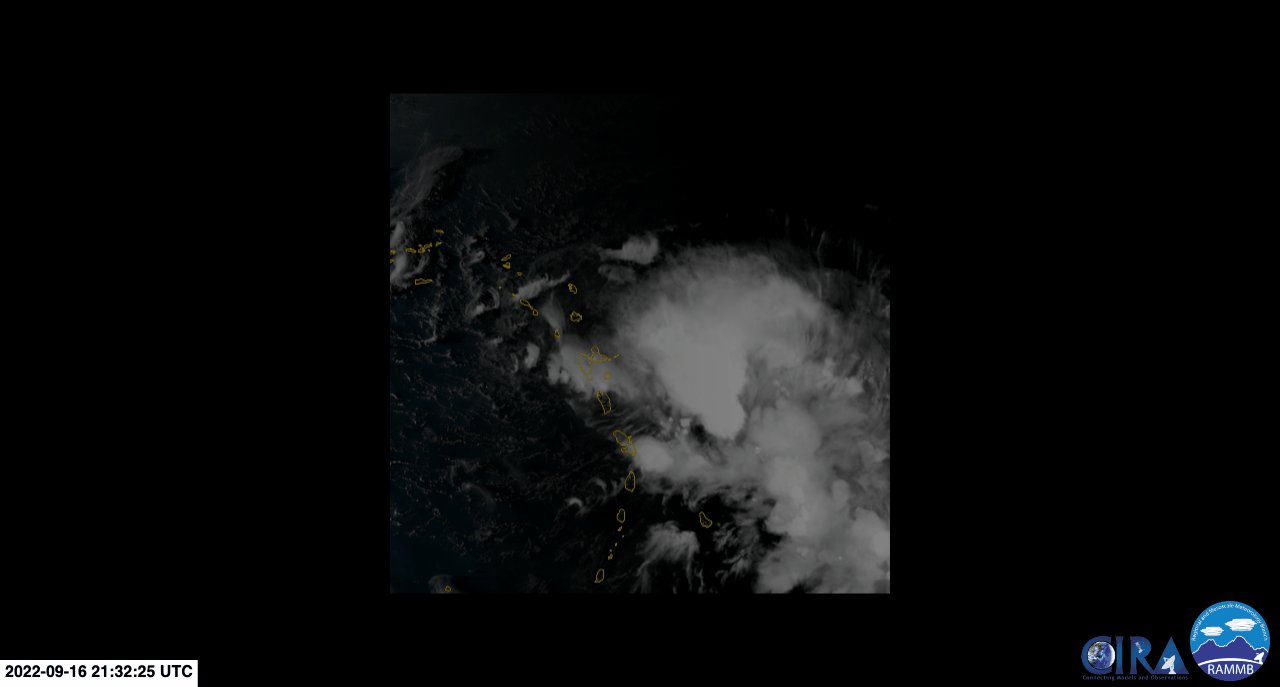 Animation de la tempête tropicale Fiona sur les Antilles - nuit du 16 au 17 septembre 2022 - Satellite GEOS-16 / CIRA