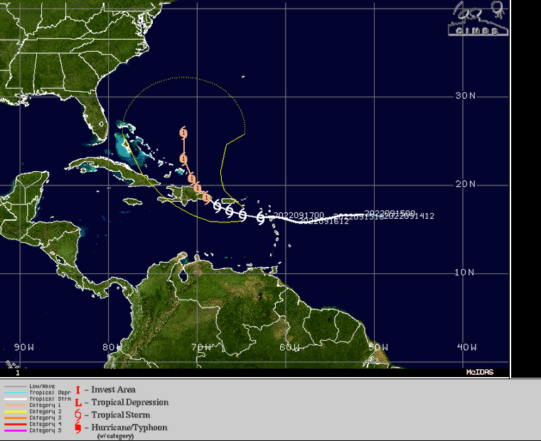 Prévision de trajectoire et d'intensité du système Fiona - CIMSS
