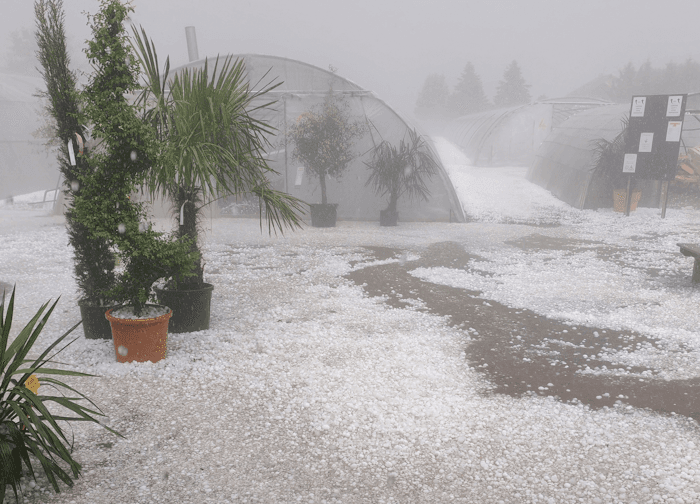 Importantes quantités de grêle à l'Hôpital-le-Grand (42) le mardi 3 juin 2025 - photo Horticulture du Forez