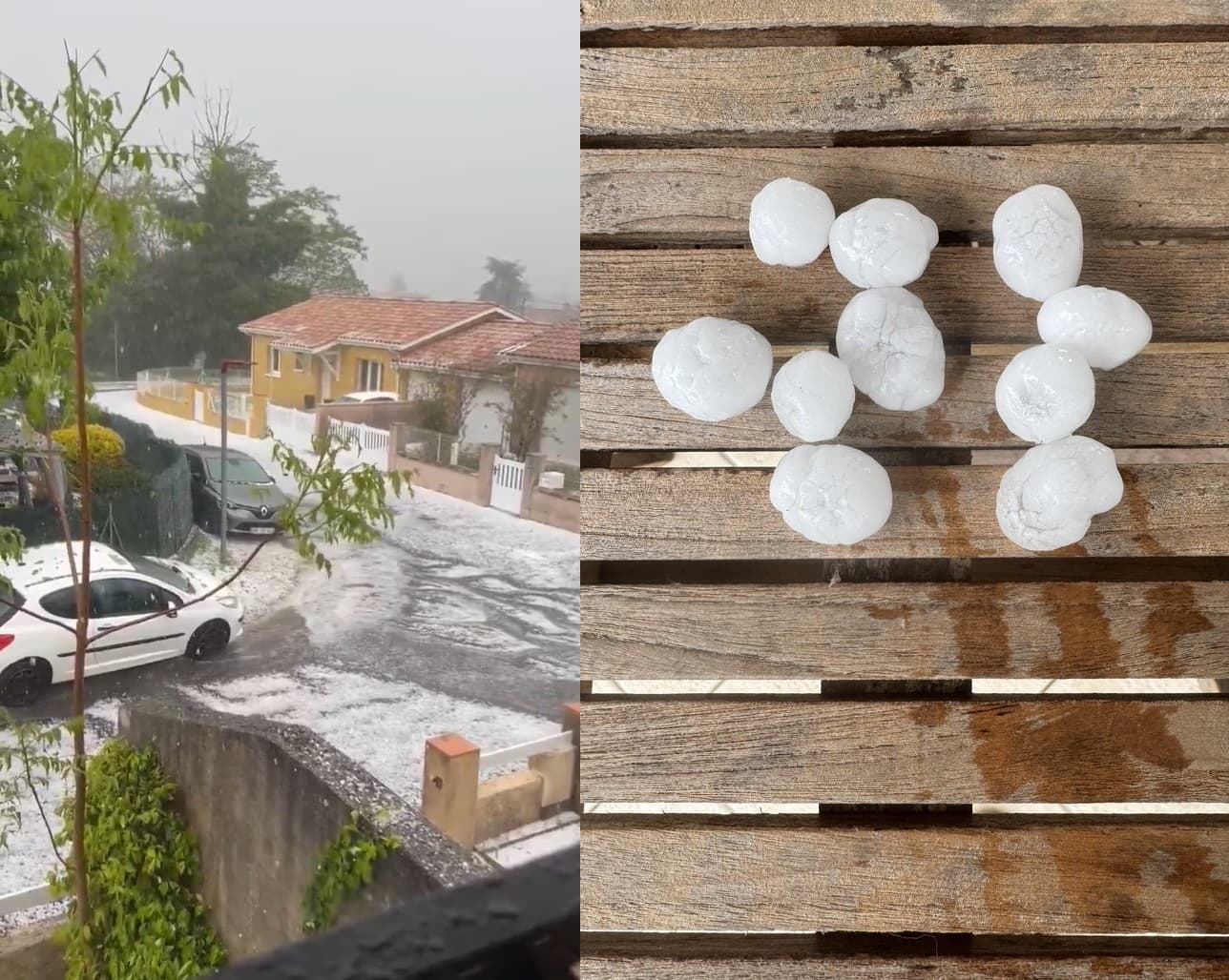 Puissant orage de grêle à Langon (33) en fin d'après-midi du 10 mai 2025 – Photos via Twitter @JeremyBschi et @PradinesFr