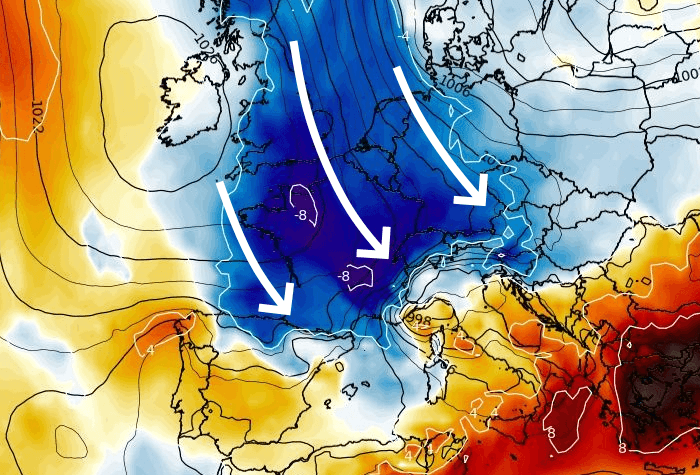 Dans les prochains jours, la goutte froide présente vers le golfe de Gascogne va se faire aspirer par une vaste dépression centrée sur la Scandinavie. Cela permettra à l'anticyclone de se reconstituer sur le proche-Atlantique tandis que les basses pressions influenceront l'Europe Centrale. Située entre l'anticyclone atlantique et les basses pressions continentales, la France verra le flux s'inverser en s'orientant au secteur nord d'ici la fin de la semaine !
