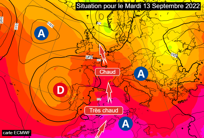 Situation à échelle continentale ce mardi 13 septembre 2022 - carte ECMWF