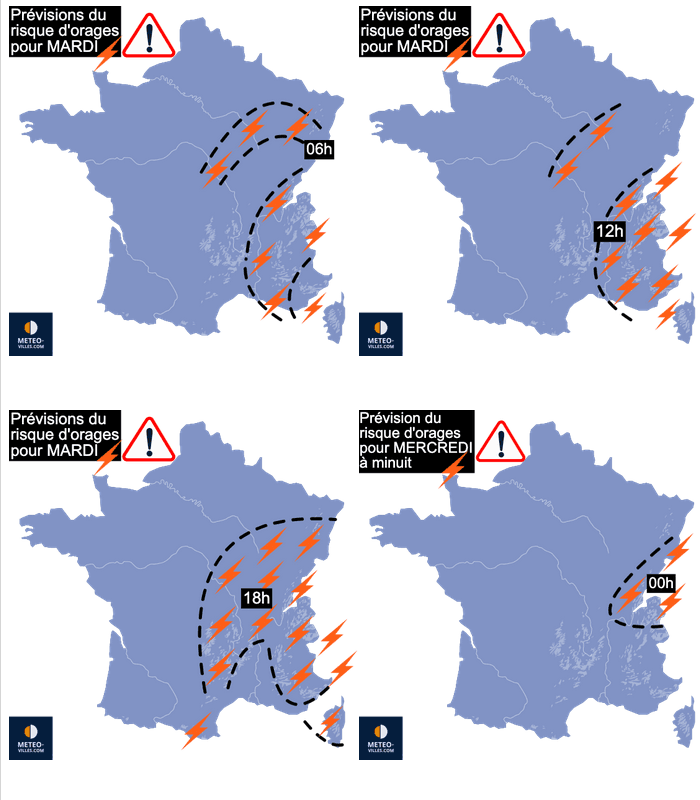 Prévisions du risque d'orages entre lundi 19 mai au matin et la nuit de mardi 20 à mercredi 21 mai - cartes Meteo-villes