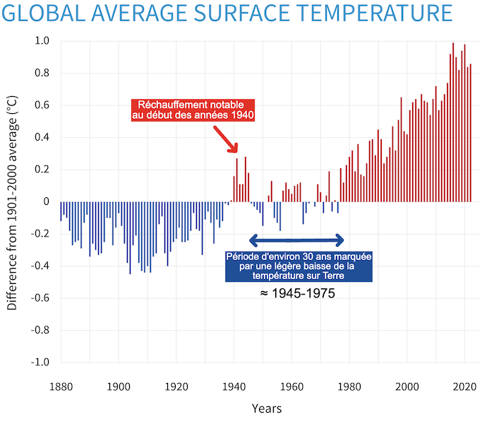 Au milieu du siècle dernier, les connaissances sur le climat étaient encore loin de celles que nous avons aujourd'hui. De plus, le réchauffement climatique n'en était qu'à ses balbutiements. Après une augmentation notable de la température mondiale au début des années 1940, on a observé un petit recul du thermomètre durant une trentaine d'années, jusqu'aux années 1970. Ainsi, les scientifiques se questionnaient sur ce que serait le climat du futur.