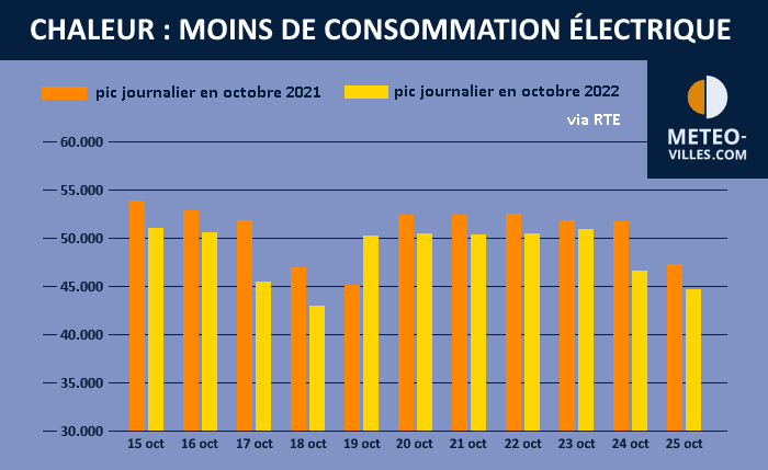 Consommation d'électricité en France du 15 au 25 octobre en 2021 et en 2022 - Météo Villes