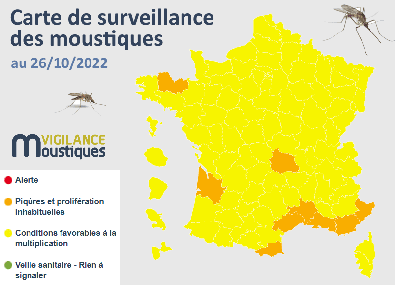 Carte de surveillance des moustiques en date du mercredi 26 octobre 2022 – via vigilance-moustiques.com