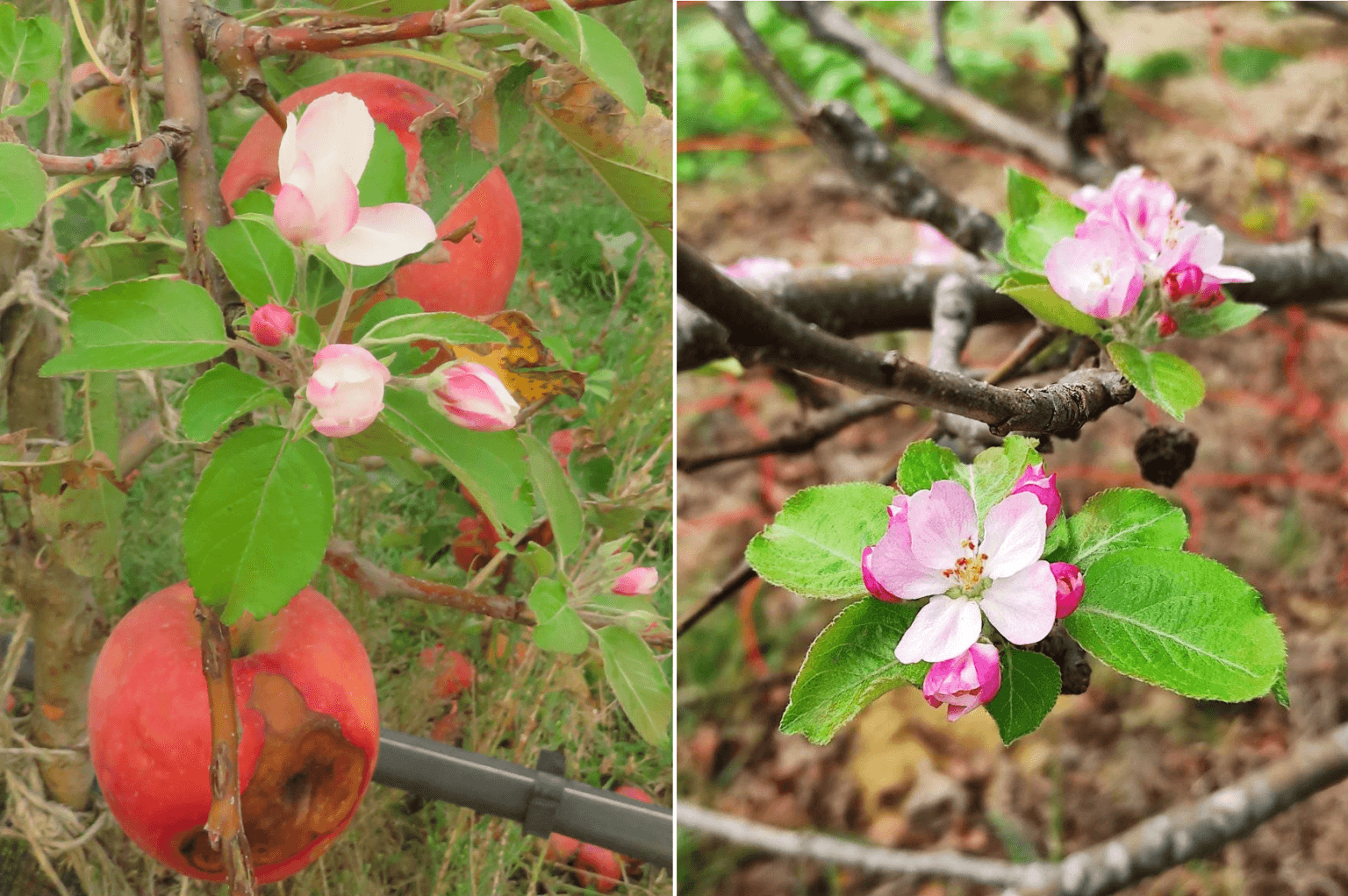 Pommiers en fleurs en Haute-Garonne et en Ariège en octobre 2022 – photos Unabelle Tinavichy & Christelle Séguy-Vigne