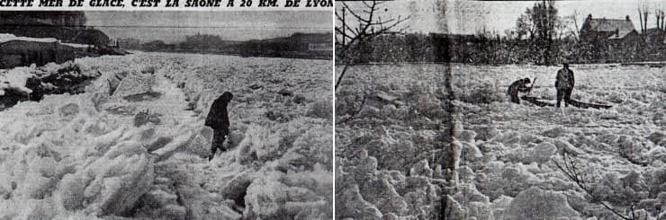 La Saône près de Lyon et la Seine près de Melun totalement gelées en février 1956 !