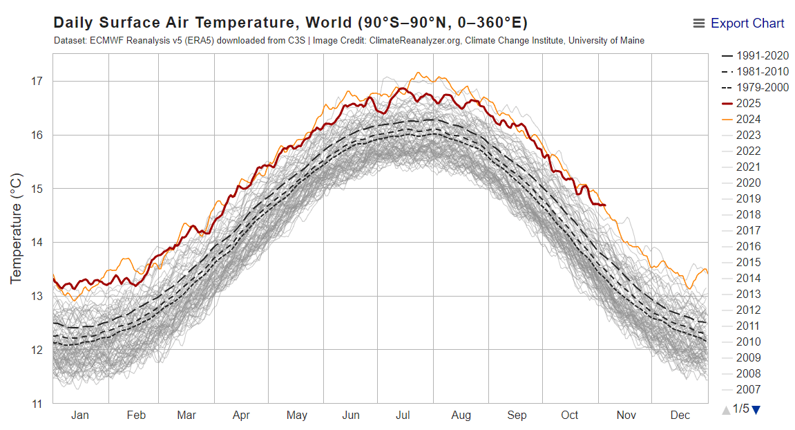 Température moyenne quotidienne sur Terre année par année de 1940 à 2025 - climatereanalyzer.org
