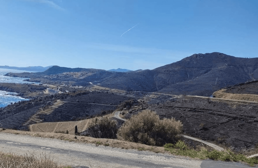 Paysage calciné depuis l'Anse de Peyrefite à Cerbère (66) ce lundi 17 avril 2023 – photo Rina Giove