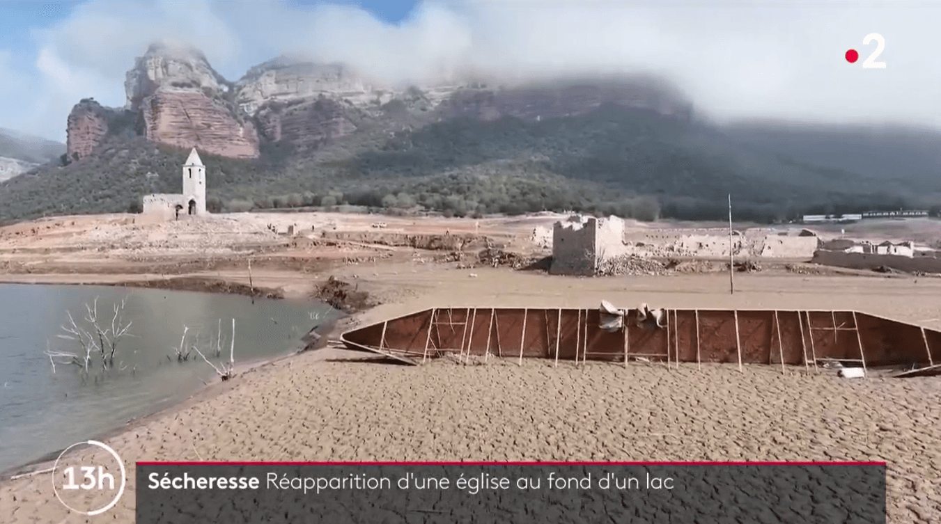 Le lac de Sau en Catalogne (Espagne) révèle ses anciens édifices engloutis – via JT de France 2