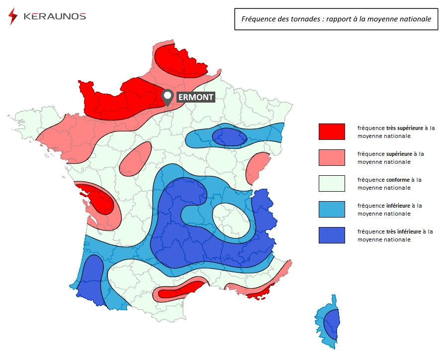 Fréquence des tornades en France par rapport à la moyenne nationale - keraunos.org