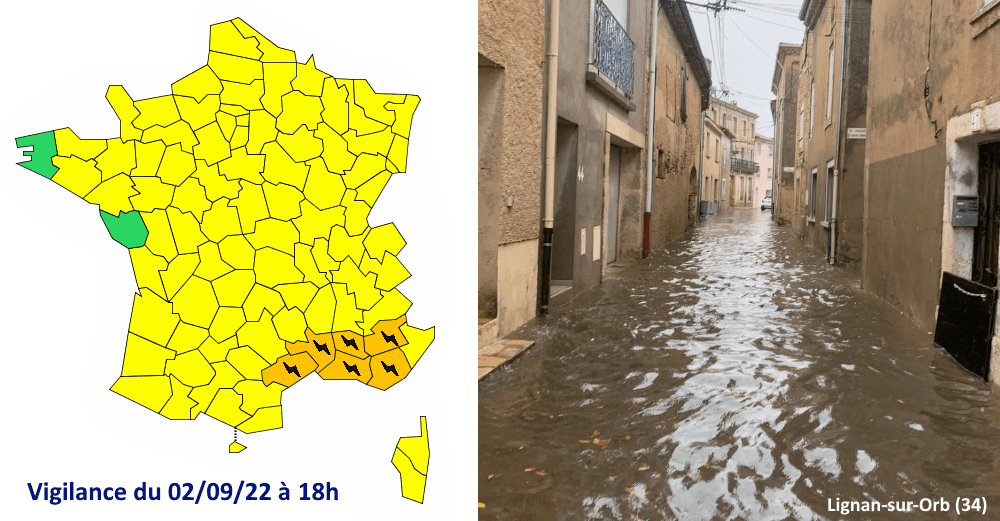 Vigilance du 2 septembre 2022 et inondations à Lignan-sur-Orb (34) - via Météo France & Météo Languedoc-Roussillon