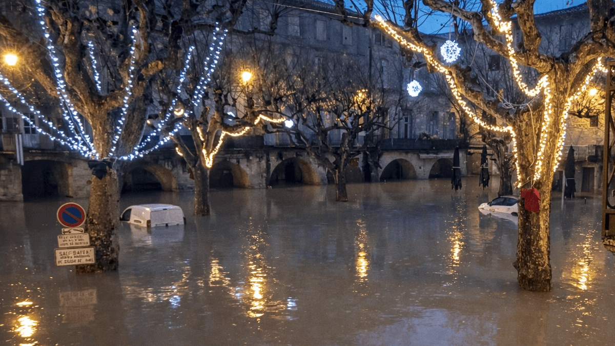 Inondations à Sommières (30) suite à la crue du Vidourle ce matin du mardi 23 décembre 2025 - photo Sabrina Ponce