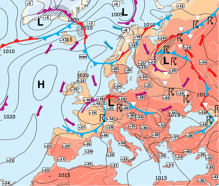 Noms des dépressions et anticyclones prévus pour mercredi 30 juin 2021 à midi (Berlin)
