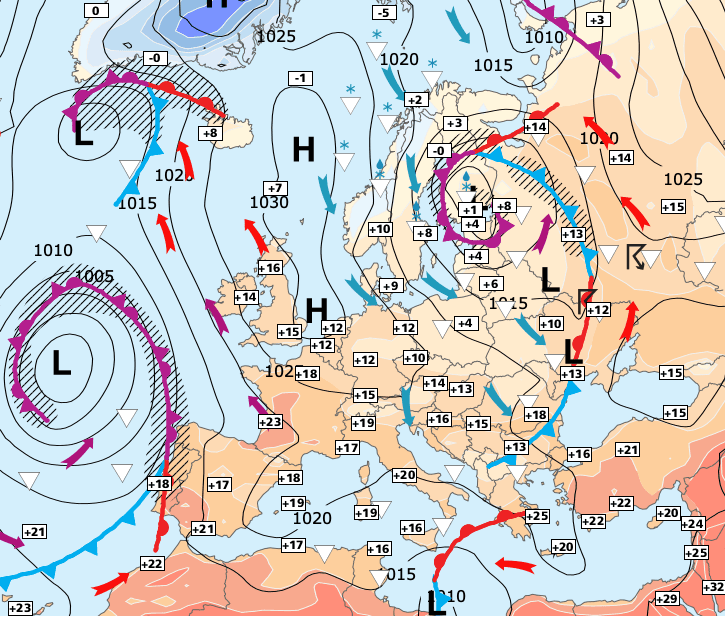 + En revanche, c’est plutôt l’air frais venu de Scandinavie qui l'emportera sur toute la France à partir de mardi, et les températures passeront alors quasiment partout en-dessous des normales de saison.