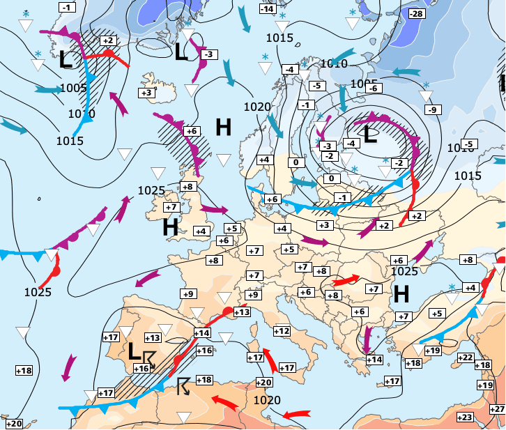 + À partir de jeudi, le courant perturbé gagnera également les régions du Sud, épargnant seulement le domaine méditerranéen sera épargné.