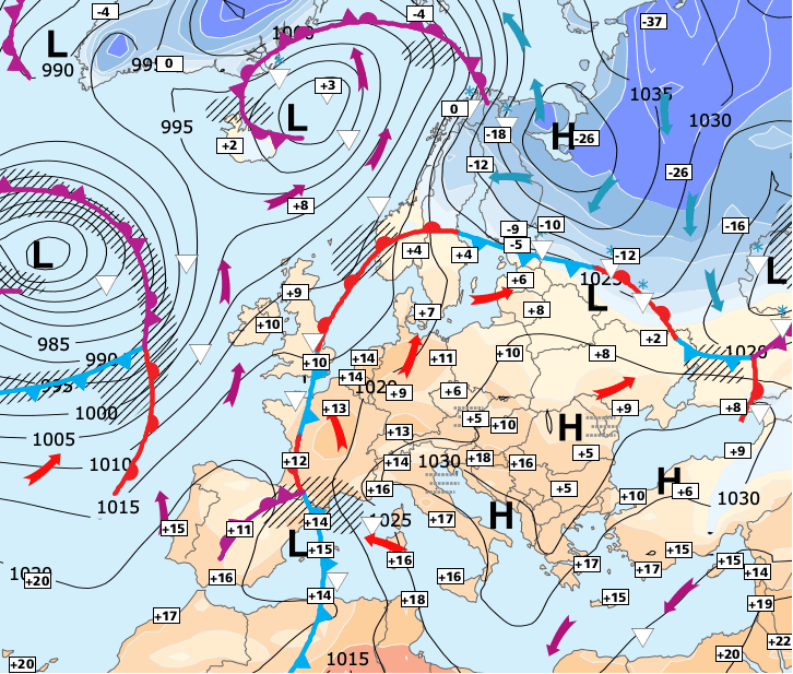 + Comme il s’agira d’un courant d'est continental, les températures ne seront pas aussi élevées qu’au cours de ces derniers jours - mais le rafraîchissement prévu sur la moitié Nord au cours du week-end prochain sera tout de même limité à des matinées très fraîches.