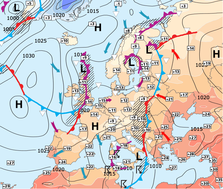 + Une goutte froide d’altitude descendra sur les régions du Nord-Ouest dans la journée de lundi et concernera presque tout le pays entre mardi et jeudi.