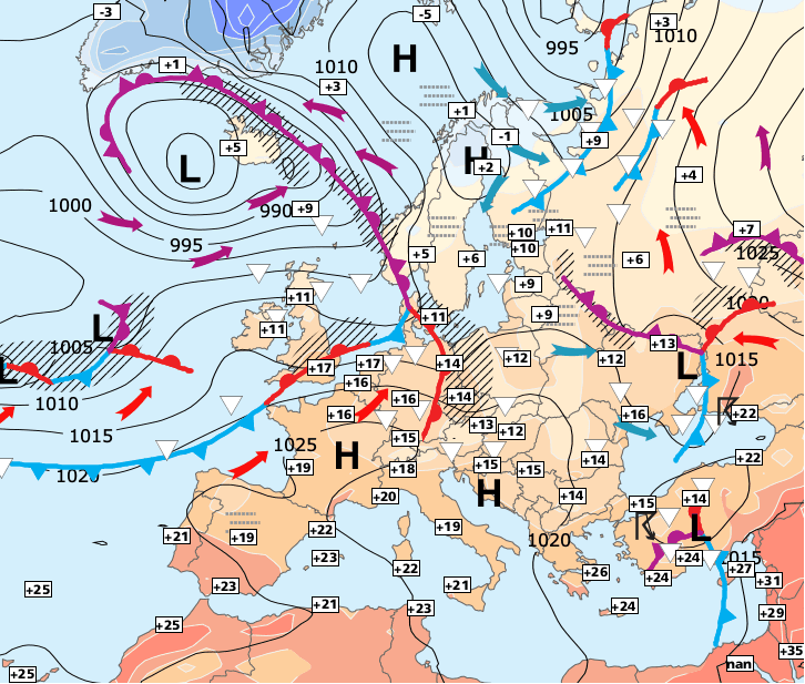 Noms des dépressions et anticyclones prévus pour samedi 31 octobre 2020 à midi (Berlin)