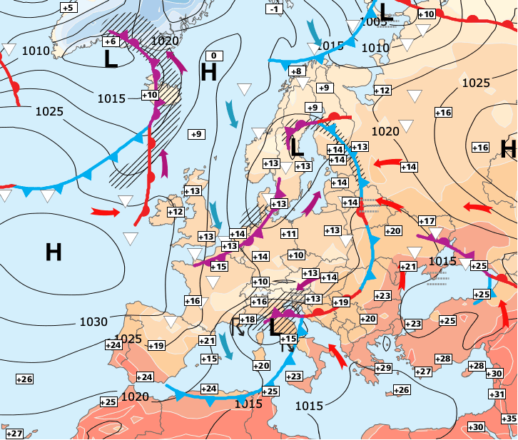 + Une goutte froide d’altitude descendra sur les régions du Nord-Ouest dans la journée de lundi et concernera presque tout le pays entre mardi et jeudi.