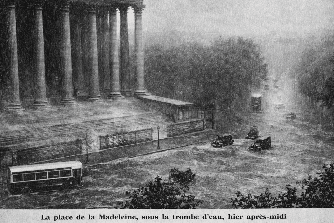 Orage du 8 août 1938 à Paris : la place de la Madeleine est inondée